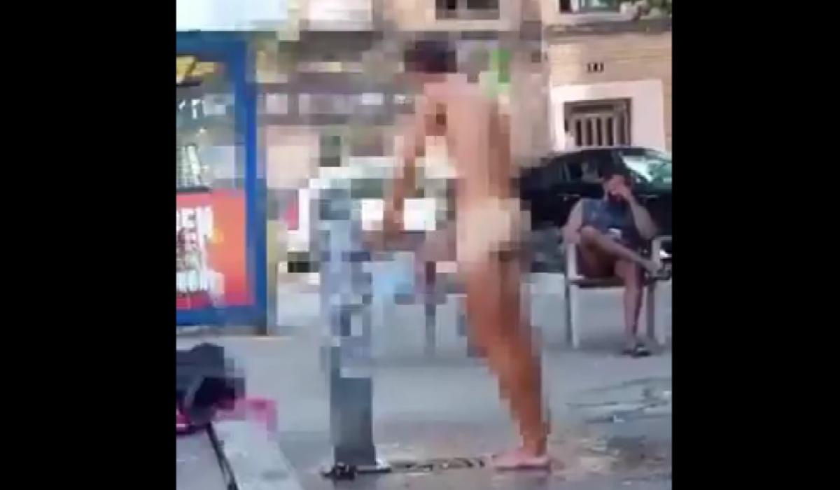 VÍDEO | Un hombre se baña desnudo en una calle de Badalona a plena luz del día