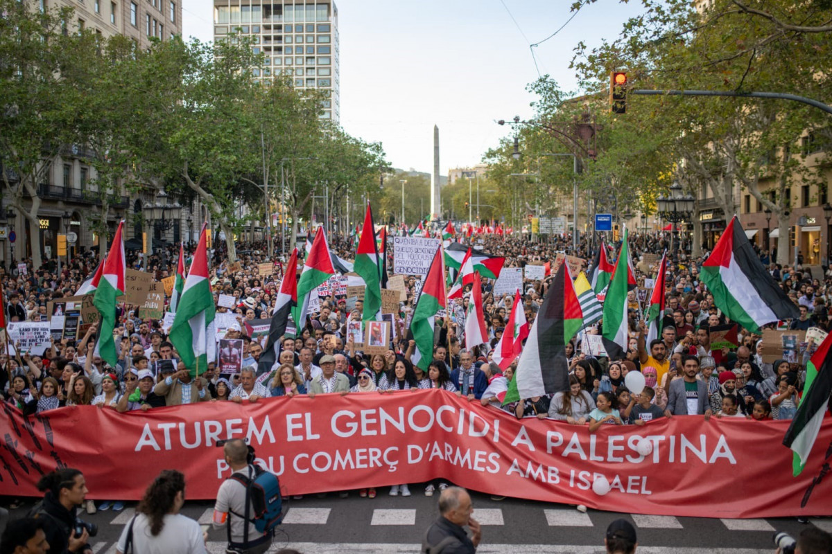 La manifestación unitaria de este sábado en el centro de Barcelona bajo el lema 'Paremos el genocidio en Palestina' ha empezado pasadas las 18.00 en la confluencia del paseo de Gràcia con la avenida Diagonal.