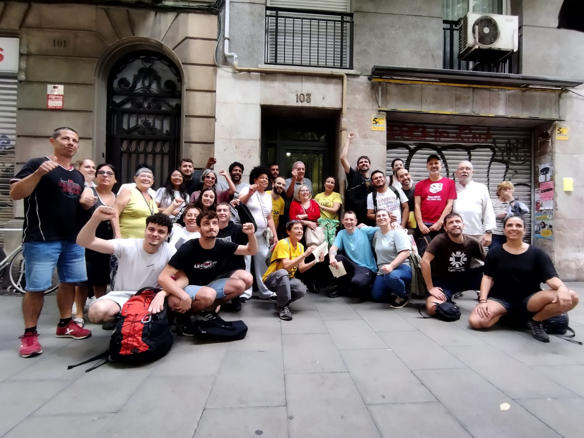 La movilización ciudadana ha logrado detener temporalmente el desalojo de Montserrat, una mujer de 75 años en tratamiento por cáncer, que vive en el mismo piso del barrio de Sants desde 1976. Una treintena de personas se concentraron este miércoles frente a su domicilio en la calle Joan Güell para evitar que fuera desalojada de su hogar, donde ha vivido durante casi cinco décadas.