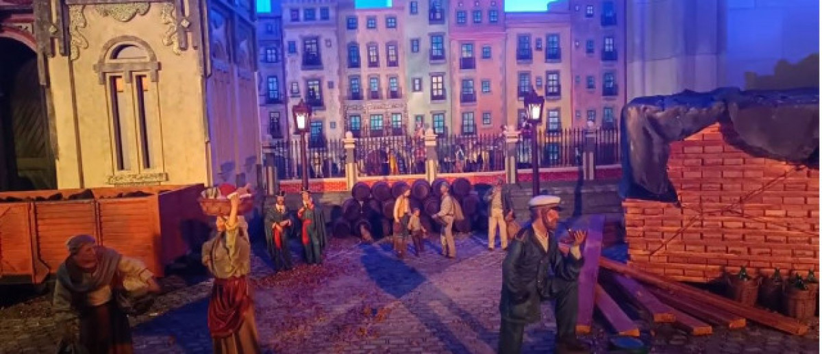 Además ha sido creado por la Associació de Pessebristes de Barcelona e incluye escenas características como el nacimiento, la anunciación, el camino de los Reyes y una escena de Sant Francesc. Con esta representación también se conmemora el centenario de Joan Salvat-Papasseit, poeta que trabajó precisamente en el Moll de la Fusta.