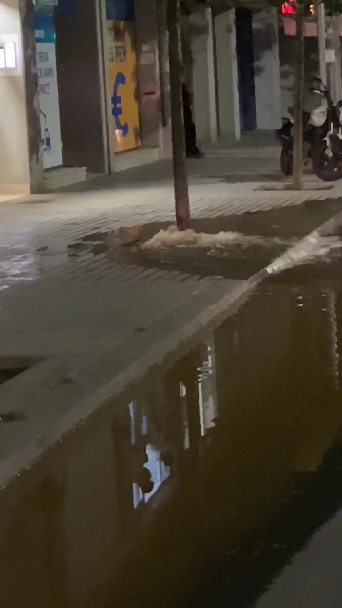 El primer indicio del problema apareció bajo un árbol, donde el agua comenzó a emerger con un tono marrón debido a la mezcla con la tierra. La situación se agravó minutos después cuando otra fuerte fuente de agua empezó a brotar dentro de la planta baja de un edificio cercano.