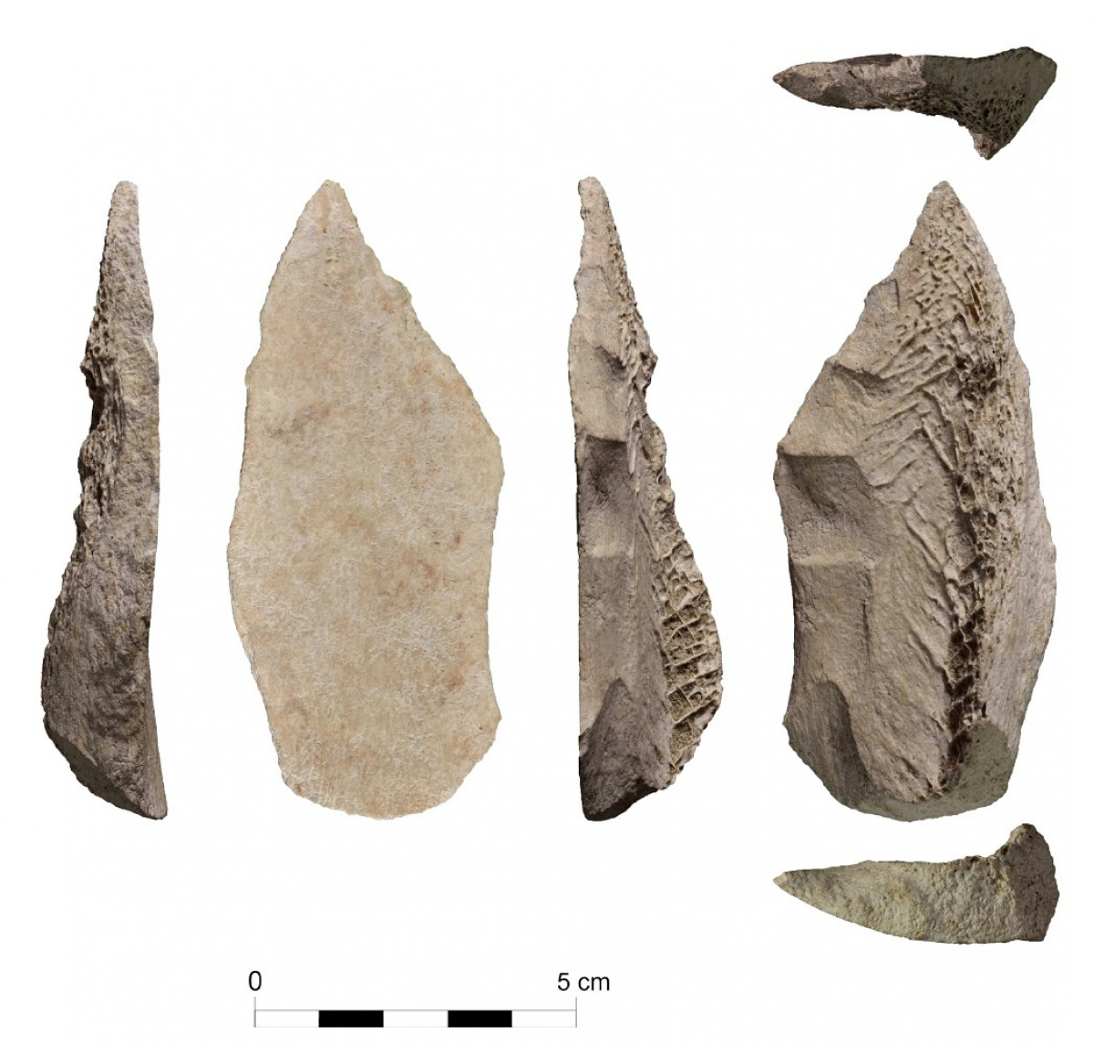 El examen ha mostrado la presencia de huellas de uso y una fractura de impacto en la punta, hecho que demostraría que la punta de hueso fue usada como lanza.