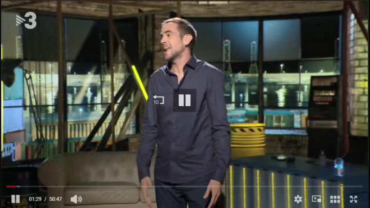 Momento en el que Joel Díaz hace su broma ante su público habitual el primer día en el que su programa Zona Franca tenía un horario para el "público normal"/ TV3