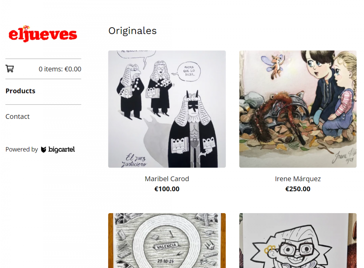 A través de la plataforma Big Cartel, el equipo de El Jueves ha puesto a disposición del público una colección de ilustraciones y piezas gráficas exclusivas de sus autores y autoras. La tienda ofrece una oportunidad única para los aficionados al humor gráfico de adquirir obras firmadas y apoyar una causa solidaria al mismo tiempo. Cada compra representa un aporte directo para aliviar la difícil situación que enfrentan muchos ciudadanos en Valencia y otras áreas afectadas por el temporal.