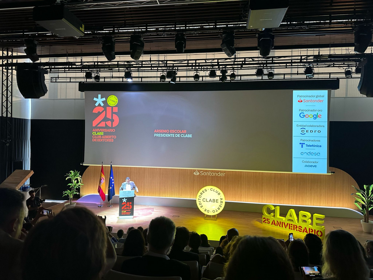 En el turno de intervenciones, el presidente de CLABE, Arsenio Escolar, reivindicó el papel estratégico de la asociación en estos 25 años. Le acompañaron en el escenario figuras como Luis Collado, responsable de Google News en España, y Victoria Gabaldón, directora de Mamagazine, uno de los medios más recientes en integrarse a CLABE.