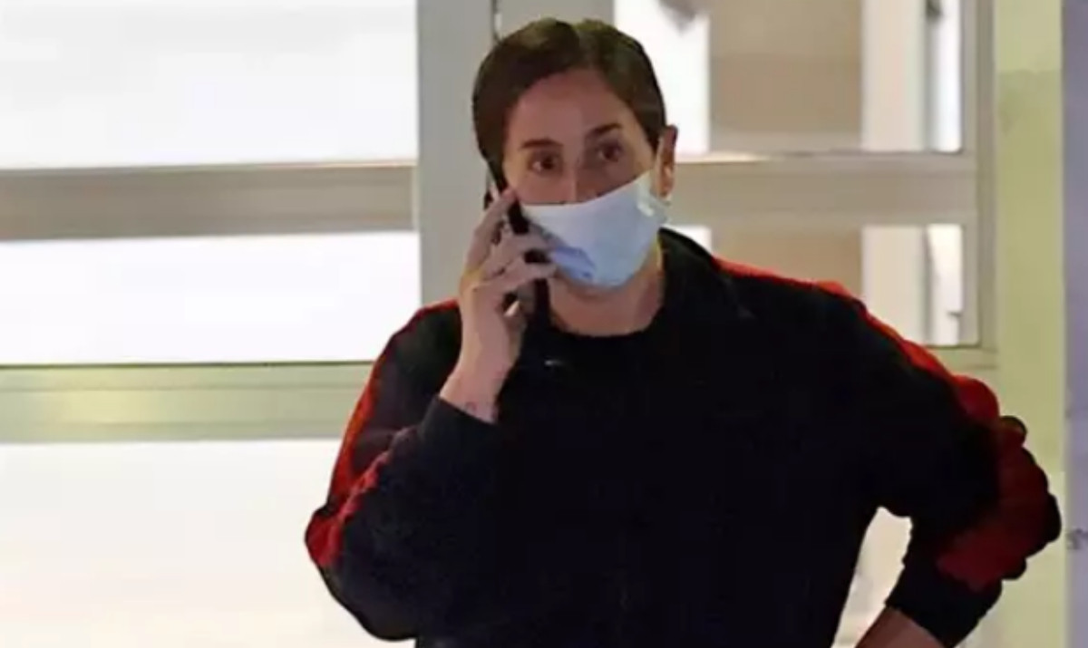 En las fotos, captadas en exclusiva por Europa Press, vemos a una Anabel con rostro de preocupación y mascarilla quirúrgica -para evitar transmitir cualquier virus o bacteria a su hija- hablando por teléfono muy seria mientras camina de un lado a otro de la puerta del centro.