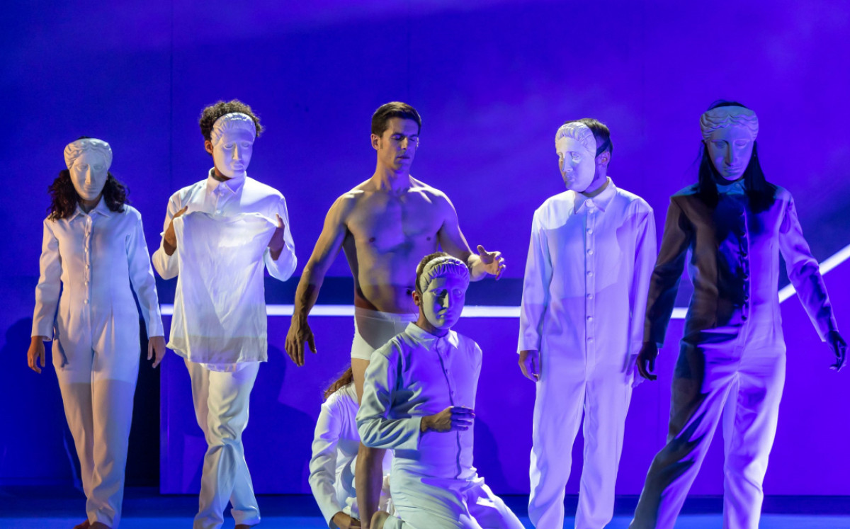La acción, pausada, se desenvuelve sin más elemento escenográfico que una pantalla sobre la que interactúan los efectos de luz, obra de Juan Gómez-Cornejo, y la presencia, por delante o por detrás, de los intérpretes, cuyo movimiento queda aderezado en los momentos pertinentes por la música a tal efectoescrita por Mariano Marín.