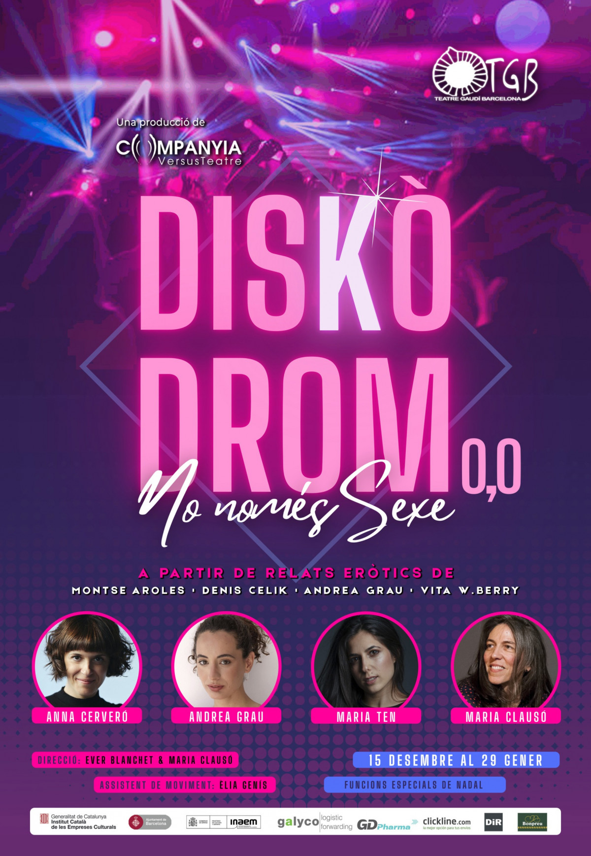 “Diskòdrom 0’0. No només sexe” es una función estructurada en torno a cuatro monólogos de las autorías citadas que interpretan respectivamente Anna Cerveró, Andrea Grau, María Ten y María Clausó.