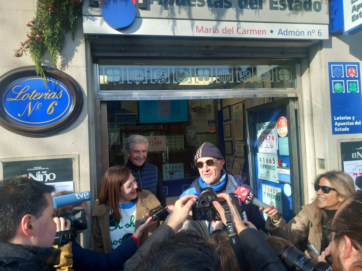 El actor, protagonista del anuncio de la lotería de Navidad de este año, el riojano de Villamediana de Iregua, Amadeo Marín, se ha acercado hasta la administración número 6 de Logroño, conocido como loterías 'María del Carmen', que ha vendido 'El Gordo' de este año, el 72.48, ha dicho que "quiero pensar que he traído suerte a La Rioja".