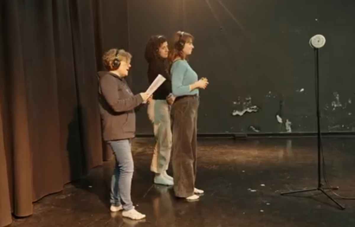 Estamos pues ante una obra teatral sin duda original. No solo por el descrito punto de partida, sino porque, además, se obliga al público a utilizar unos auriculares como canal de audición tanto de la palabra -expresada en tiempo real por los intérpretes-, como de la música, ésta sí pregrabada, obra de Neus Pàmies y Gerard Marsal.