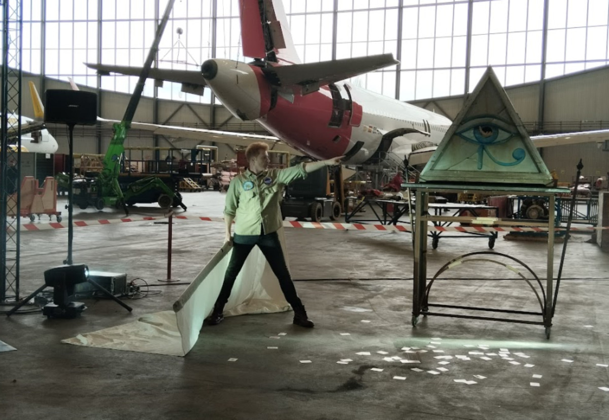 Luis Marsillach (padre de Adolfo, el actor del mismo apellido) que en su tiempo fue respetado periodista y crítico teatral, decía que “las variedades son lo menos variado del teatro”, algo que aplicaba también a uno de su géneros, el ilusionismo. Pero sin duda habría modificado dicha opinión si hubiera visto sobre al Mago Yunke, cuya actuación es un derroche de imaginación, habilidad, espectacularidad, belleza plástica y buen humor, como cuando, tratando de justificar su pelo rubio, dice que “soy hijo de mi madre y de un amigo escocés de mi padre”. El nervio del show está constituido por una serie de números en los que aparecen y desaparecen personas como por arte de ensalmo, incluido un pequeño espectador cuyos padres le pierden de vista cuando el Mago le invita a subir al escenario y a montarse con él en la carcasa de un avión, para verlo aparecer de nuevo más tarde sano y salvo pero ¡desde el fondo de la sala! En “Hangar 52” todos los trucos están hábilmente enhebrados con un montaje coreográfico que cuenta con la utilización puntual de numerosos y sorprendentes efectos especiales.