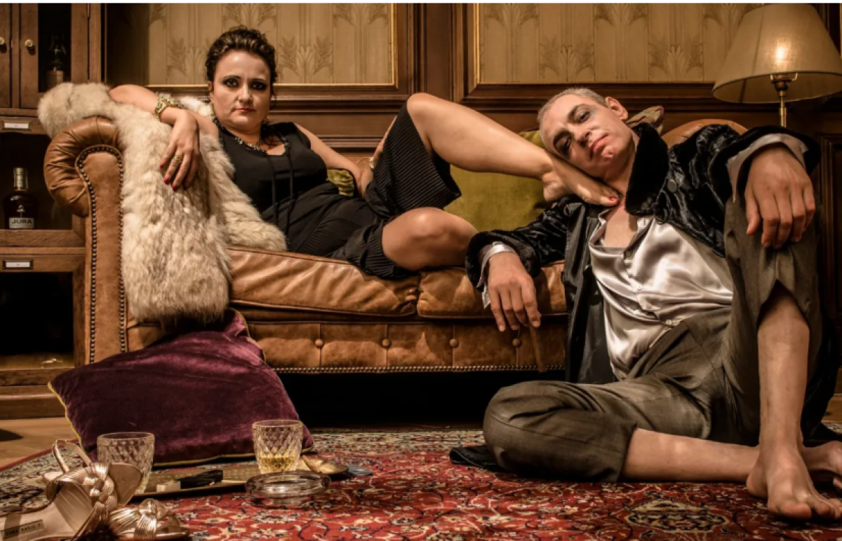 A medida que lo espectadores ocupan sus respectivas localidades, Miriam Alamany, elegantemente vestida con traje de noche, aparece y desaparece despreocupadamente por el espacio escénico con la desenvoltura propia de quien está por encima del bien y del mal y gusta de exhibir ante los demás una superioridad si no moral, sí desde luego social. Porque los dos personajes de este texto dramático -el rol masculino a cargo de Carles Martínez, constituyen una pareja de hecho que, al margen de sus respectivo matrimonios, comparten una vida de lujos, placeres, sexo y vicios que se intuye libre toda suerte de limitaciones.