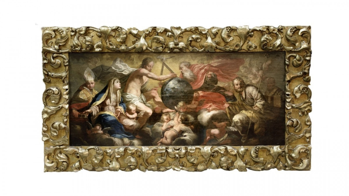 La obra barroca ‘La Verge amb sants intercedint davant la Santíssima Trinitat’ se integra en el patrimonio público de Catalunya tras su identificación como pieza del siglo XVII