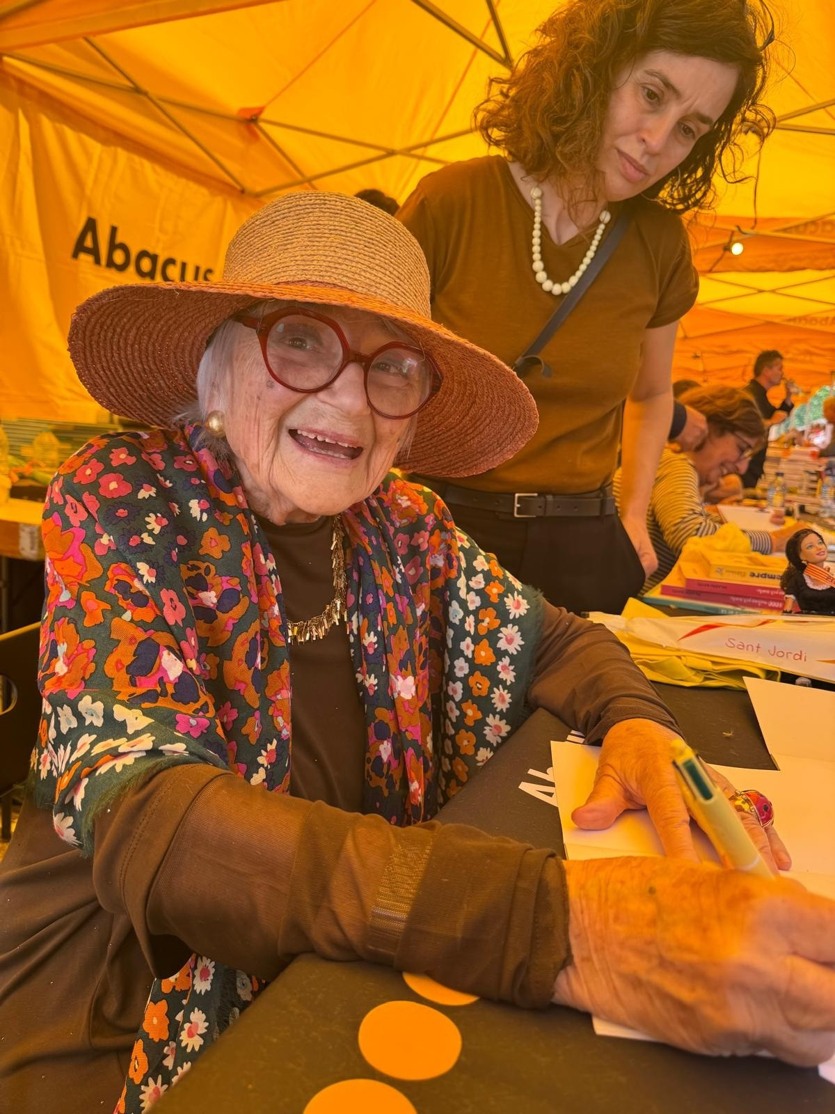 Bayés, que ha afirmado que se le han acercado tanto pequeños como mayores para firmarles, ha querido reivindicar la celebración de Sant Jordi: "El presidente Pujol dijo una cosa que yo me la he hecho mía: si todo el año los catalanes fuéramos como en el día de Sant Jordi, seríamos la primera potencia mundial".