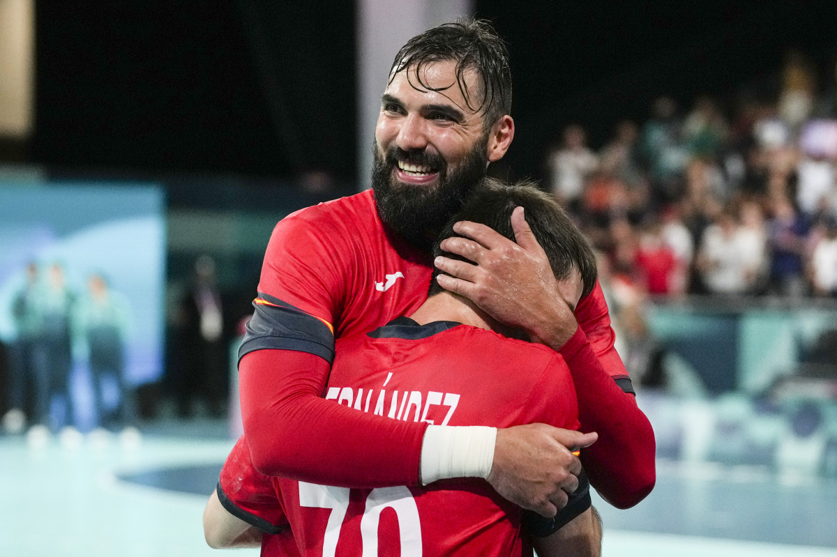 Álex Dujshebaev con la selección española masculina de balonmano contra Eslovenia en los Juegos Olímpicos de París