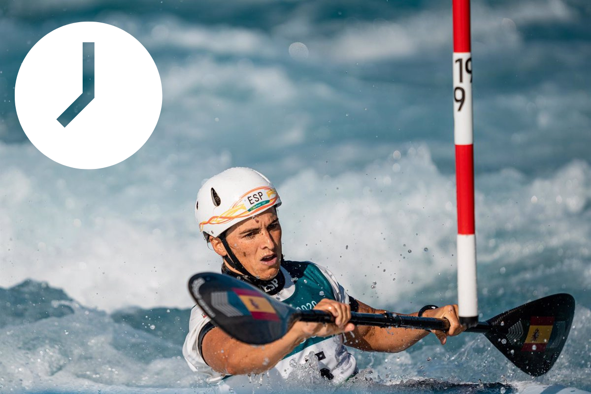 15:35. Maialen Chourraut disputa la prueba de piragüismo eslálom kayak cross.