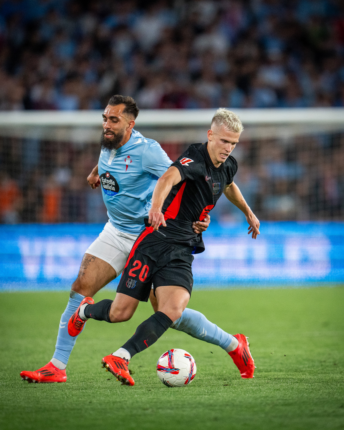 El Barça tomó la delantera en la primera mitad gracias a un tanto de Raphinha. El brasileño aprovechó una asistencia aérea de Koundé y un error defensivo de Óscar Mingueza para batir a Iván Villar. El Celta reclamó dos acciones polémicas: un posible penalti de Gerard Martin sobre Iago Aspas que hubiera sido riguroso y una falta del mismo jugador sobre Aspas que pudo haber supuesto su segunda amarilla, pero el árbitro decidió no sancionarlas.