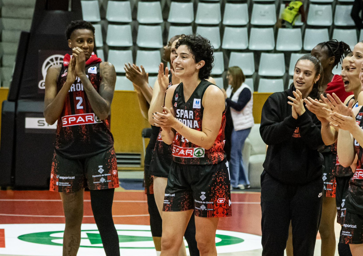 El último cuarto dejó uno de los momentos más emotivos del encuentro: la vuelta a pista de Ainhoa López. La escolta selló su regreso de la mejor manera posible, anotando un triple que desató la ovación del público (74-51). Con el Spar Girona encendido, Tate desde la larga distancia, Lundquist en transición y Ainhoa con una acción bajo canasta ampliaron la ventaja hasta los 30 puntos (83-53). A tres minutos del final, Berta sumó un triple más, logrando que todas las jugadoras del equipo anotaran en el partido.