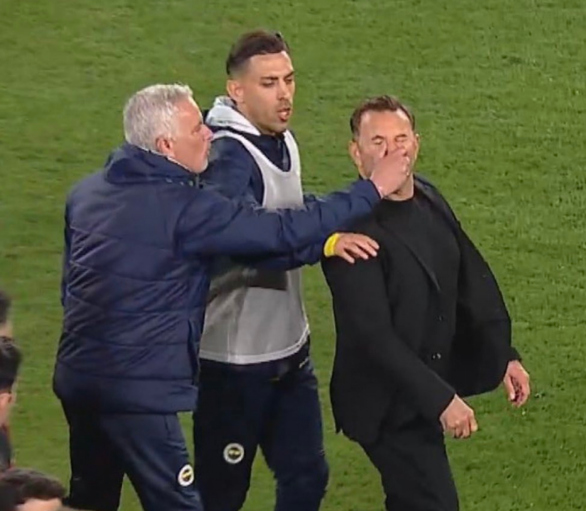 Todo ocurrió tras el pitido final, en un clima de alta tensión donde más de un centenar de policías ingresaron al campo para garantizar la seguridad de los directivos y empleados del Fenerbahçe. Fue en ese momento cuando Mourinho se acercó a Buruk y, de manera inesperada, le agarró la nariz, un gesto que dejó atónito al entrenador del Galatasaray, quien terminó cayendo al suelo sorprendido.