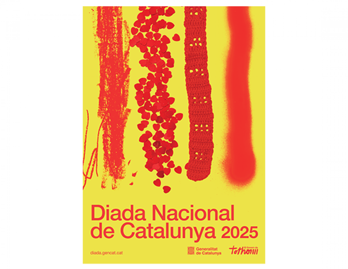 El cartel oficial de este año, diseñado por el estudio Partee, representa una reinterpretación de las cuatro barras de la senyera mediante personas de diferentes edades, orígenes y colectivos. Según Paneque, “Catalunya es un mosaico muy diverso, pero tenemos elementos comunes, como las cuatro barras”, subrayando la unidad en la diversidad a través de la creatividad y el arte.