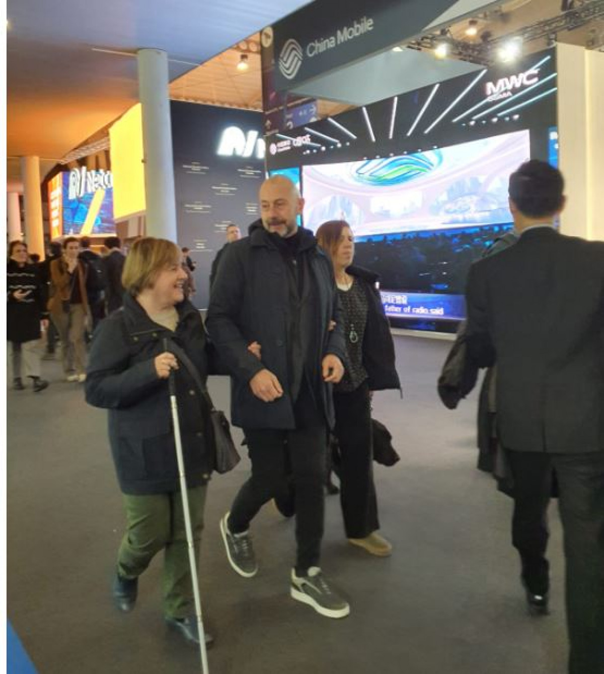 CatalunyaPress ha recorrido el MWC23 con dos afiliadas de la ONCE quienes con un teléfono en la mano, un bastón, un perro guía y un voluntario han accedido al recinto, se han paseado por los salones del Congreso, se han acercado con las manos a un robot coreano, han leído todas las etiquetas explicativas que se encontraban a su paso, han saludo a un robot perro y se han enfudado una gafas de LEOVO que les permitirian pasearse por Barcelona gracias a un proyecto piloto que ha colocado etiquetas por la ciudad condal.