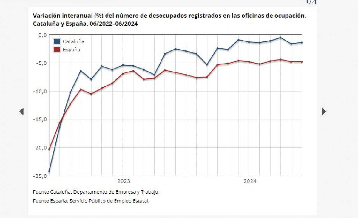 La tasa de paro en Catalunya baja