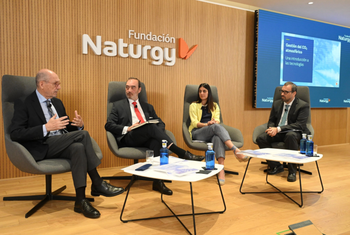 Tras la presentación del estudio, se celebró un coloquio moderado por Rubén Esteller, director adjunto de El Economista, con la participación de Pedro Mora, presidente de la Plataforma Tecnológica Española del CO2, y Esperanza Montero, manager de Relaciones Gubernamentales para el Sur de Europa de Carburos Metálicos (grupo Air Products).Pedro Mora enfatizó que "para implantar tecnologías de captura y almacenamiento de CO2, España necesita una estrategia de país, como ya está haciendo la Unión Europea. Alrededor del 15% de nuestras emisiones requieren de estas tecnologías, pero somos la única gran economía europea sin una hoja de ruta clara". Para Mora, la descarbonización debe ser competitiva, requiriendo un plan liderado por el gobierno y apoyado por todos los agentes. "No basta con buscar la neutralidad, debemos aspirar a la negatividad, reduciendo emisiones y capturando lo que no se pueda evitar. Recuperar la industria, contar con soluciones autóctonas y gestionar bien nuestras renovables es esencial para una transición energética sostenible", concluyó. Por su parte, Esperanza Montero recalcó la importancia de una estrategia nacional clara en descarbonización: "poner las plantas de producción cerca de donde se captura y almacena el gas es fundamental. Esto hará que se aumente la competitividad industrial y económica". Además, recordó que "si queremos seguir manteniendo la competitividad, tenemos que usar los productos de aquí y no los de fuera porque son más baratos". En la apertura de la jornada, Rafael Villaseca, presidente de Fundación Naturgy, destacó la importancia de las tecnologías de captura de CO2: "Capturar, tratar y retirar el CO2 con tecnologías eficaces es clave para alcanzar el objetivo de cero emisiones para 2050. Sin embargo, seguimos emitiendo cantidades enormes a nivel mundial, y los esfuerzos por retirarlo aún son irrelevantes. Llegar a 2050 será muy complicado si no aceleramos el desarrollo y despliegue de soluciones reales".