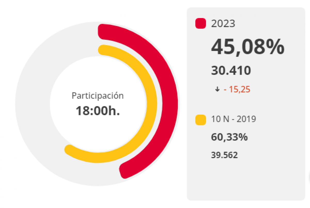 Un total de aproximadamente 9.000 personas menos han ejercido su derecho al voto en esta ocasión, con tan solo 30.000 votantes registrados hasta el momento, en contraste con los 39.000 electores que se presentaron en 2019.