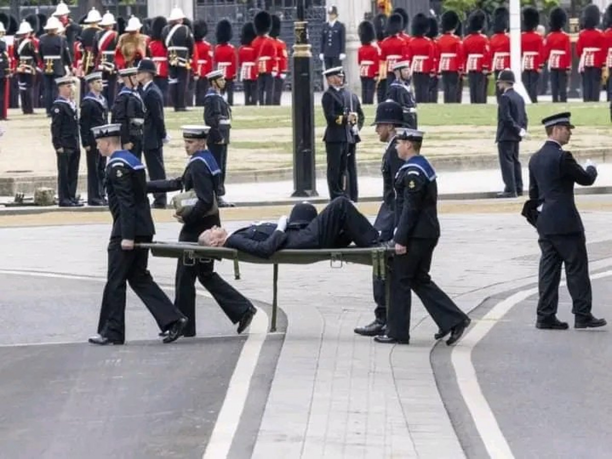 Un oficial de policía se desmayó mientras estaba de servicio en Londres para el funeral de la Reina y fue llevado en una camilla. El oficial colapsó poco antes de que la procesión pasara por el Mall, cerca de la plaza del Parlamento.