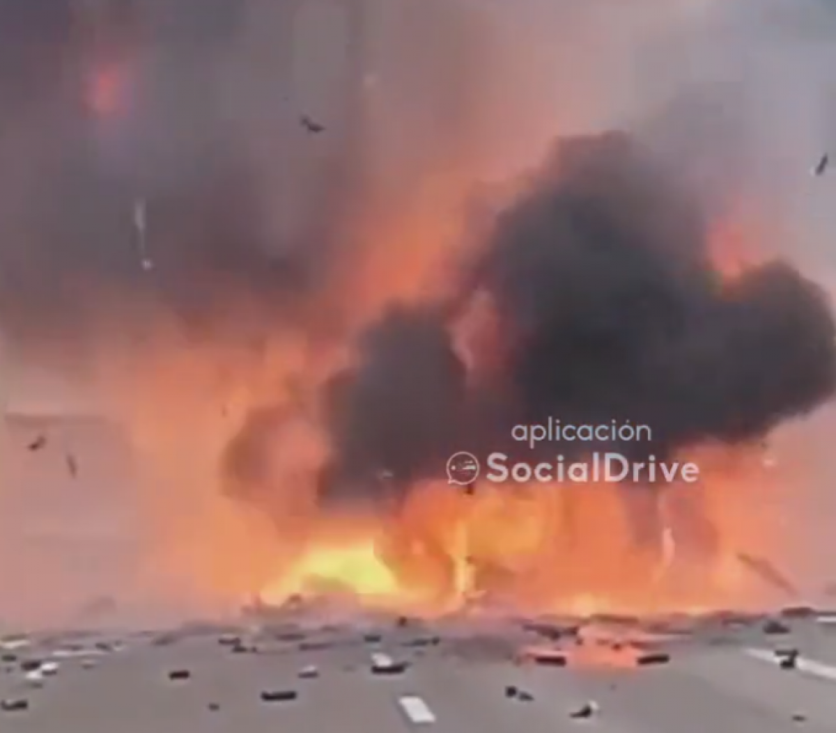 Rápidamente se desarrolló un incendio y las llamas se extendieron desde el camión con los contenedores de óxido nitroso al que contenía los materiales peligrosos. No quedó claro de inmediato qué tipo de materiales transportaba este último, pero las autoridades dijeron que se liberaron sustancias tóxicas.