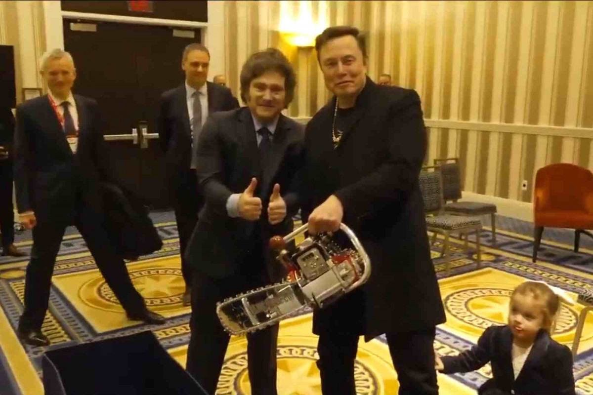 VÍDEO | El insólito momento en que Milei regala una sierra eléctrica a Elon Musk