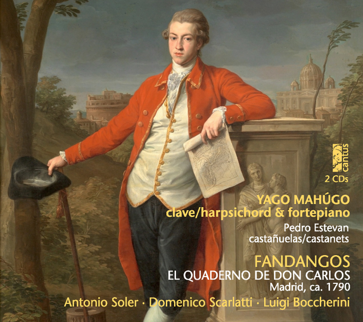 Volviendo a Charles Cecil Roberts -el “don Carlos” del título del CD-, parece ser que llegó a Madrid en 1790 para asistir a la boda de Jacobo Felipe Fitz-James Stuart, V Duque de Berwick, quien contrajo matrimonio con María Teresa de Silva-Fernández de Híjar y de Palafox, el 24 de enero de ese año. El británico se alojó en el edificio actualmente conocido como Palacio de Liria, y, durante su estancia de cuatro años en la ciudad, pudo conocer bien de cerca tanto su vida social, como la música que allí se escuchaba. Roberts se dedicó a coleccionar partituras durante su periplo continental, pero entre ellas no se conserva ninguna de creadores españoles. No obstante, en su diario dejó anotada su devoción por los tres grandes compositores de la España dieciochesca, que protagonizan este disco. De hecho, el Fandango del Padre Soler fue una de sus piezas favoritas, pues consideraba que esa música era capaz de “ahuyentar los males presagios, poner luz en la oscuridad y convertir el agua en vino”. Precisamente, Yago Mahugo ha grabado dos versiones de este tema, una de ellas acompañando al clave con la percusión del mítico músico Pedro Estevan. En el CD aparecen además otros dos fandangos, el de Domenico Scarlatti, y una transcripción para tecla del Quinteto Nº 4 para cuerda y guitarra de Luigi Boccherini titulado igualmente “Fandango”. Igual que en el primer caso, ambos se presentan en una versión en solitario y otra acompañada de percusión.