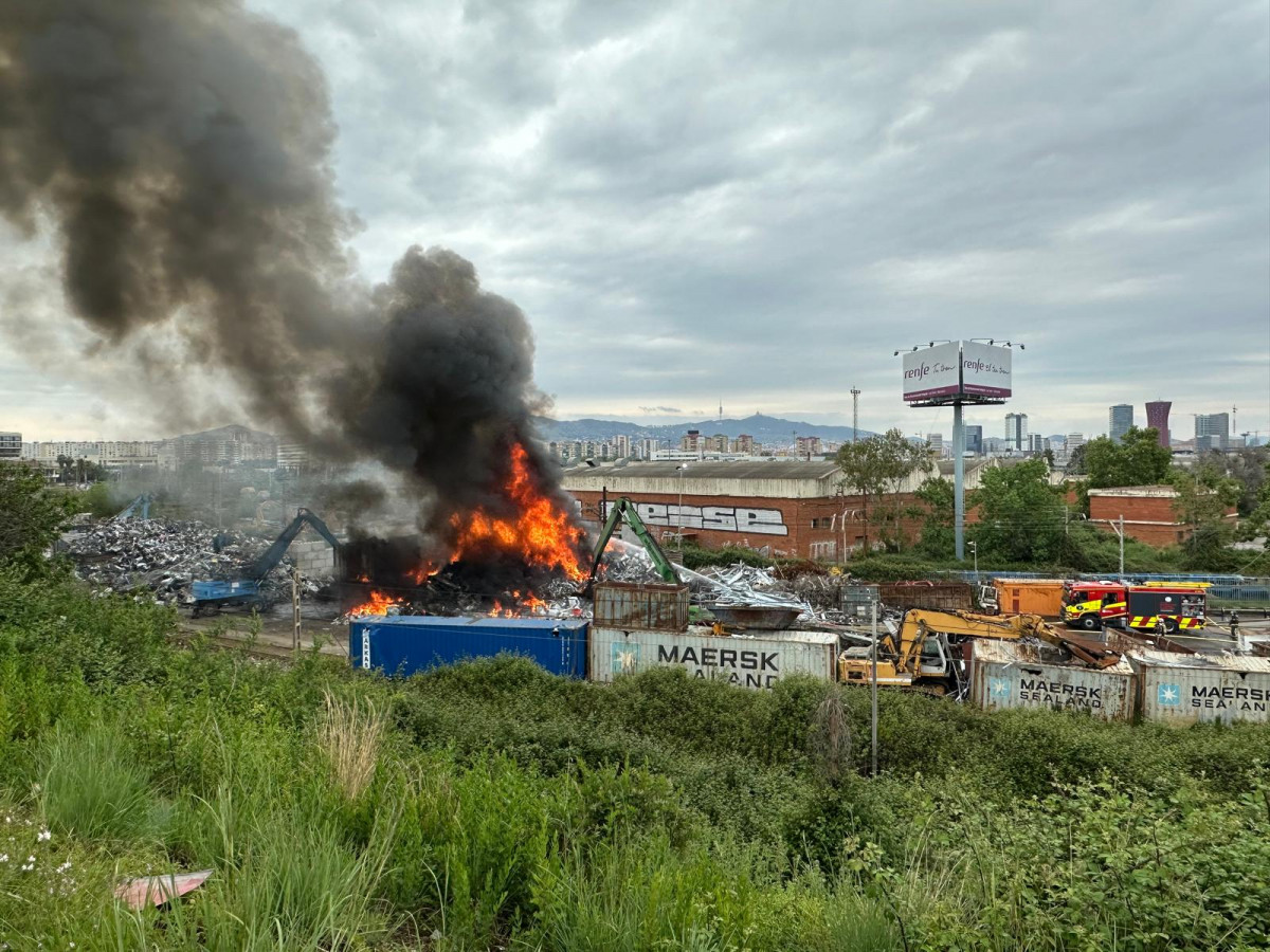 Las llamas afectan al exterior del recinto industrial y han generado una gran columna de humo. Aunque en un principio los Bombers de la Generalitat se encargaban de los trabajos de extinción, finalmente han sido los Bombers de Barcelona quienes han tomado el mando.