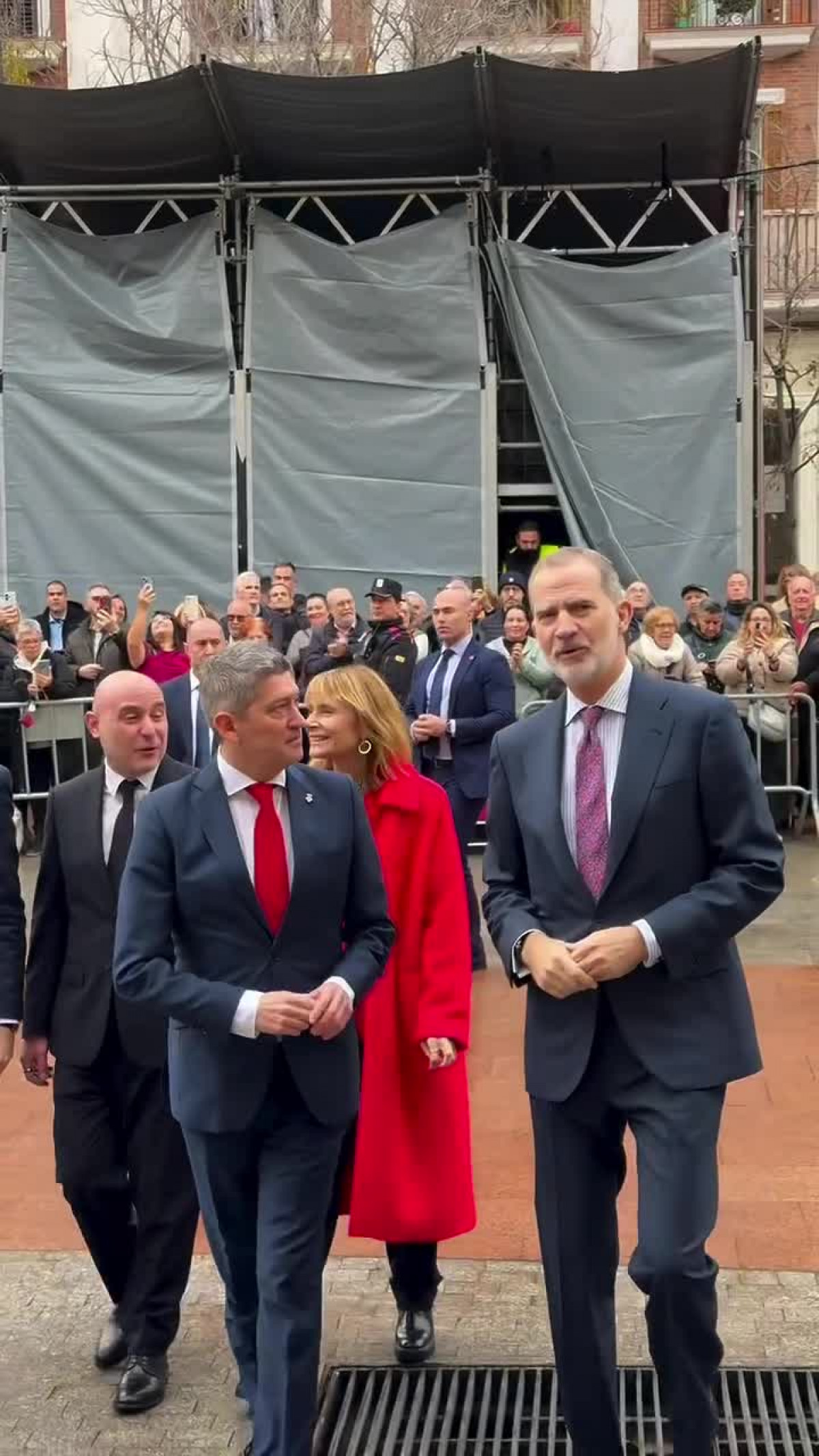 A su llegada al consistorio, Don Felipe ha sido recibido por el presidente de la Generalitat de Catalunya, Salvador Illa; el delegado del Gobierno en Catalunya, Carlos Prieto; el alcalde de la ciudad, David Quirós, y la presidenta de la Diputación de Barcelona, Lluïsa Moret.