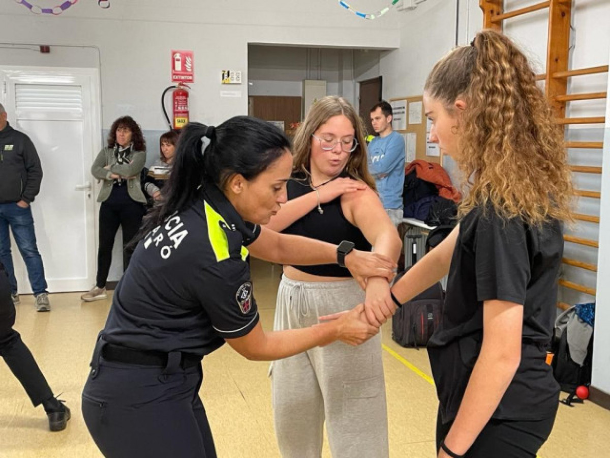 En el transcurso del taller, que imparten agentes de la Policía Local con formación específica en la materia, también se trabaja el desarrollo de la capacidad de autoconfianza y reacción de las estudiantes, y se les da consejos para intentar evitar convertirse en víctima fácil de una hipotética agresión o de algún acto delictivo.