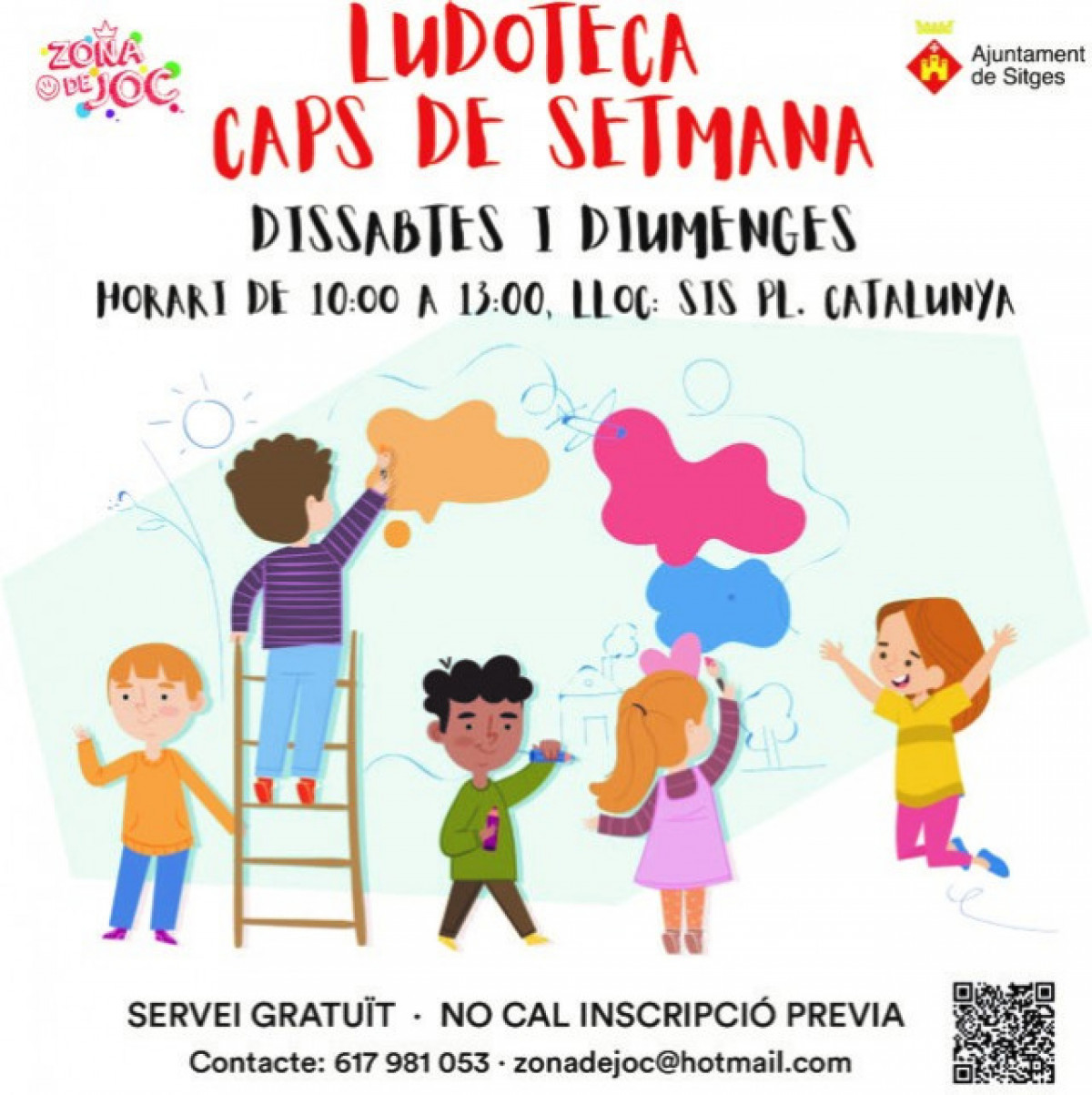 El Ayuntamiento de Sitges ha habilitado un servicio de Ludoteca gratuito para los niños y adolescentes de 3 a 14 años, que permanecerá abierto todos los fines de semana de 10 a 13 horas