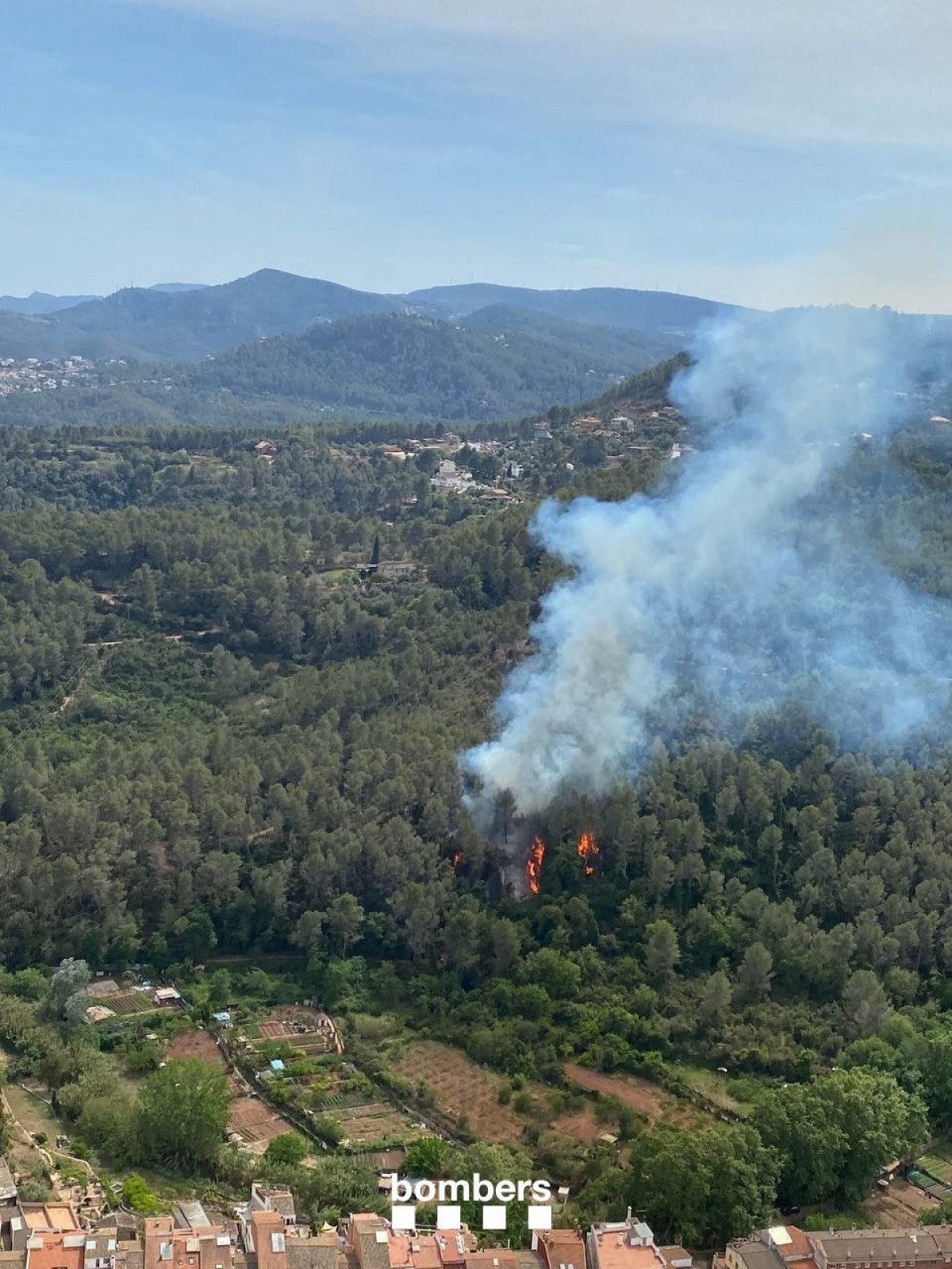 Un incendio forestal quema en la Palma de Cervelló (Barcelona) este sábado por la tarde en una zona que se encuentra entre el municipio y la masía de can Llopart.