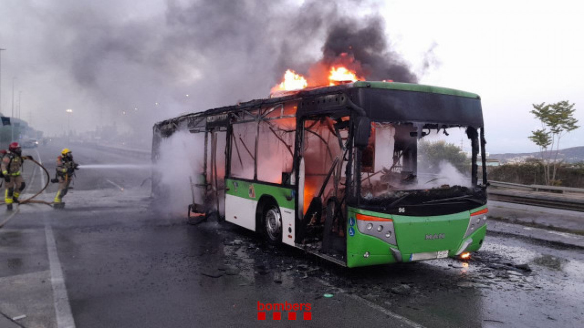 Un autobús acaba calcinado en Sant Just Desvern tras un espectacular incendio