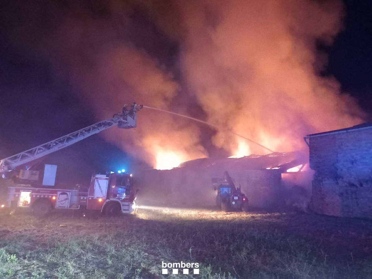 Los Bombers de la Generalitat trabajan este viernes a las 8.15 horas en un incendio que afecta a un pajar y a maquinaria en una nave de Tremp (Lleida) al que han enviado nueve dotaciones.