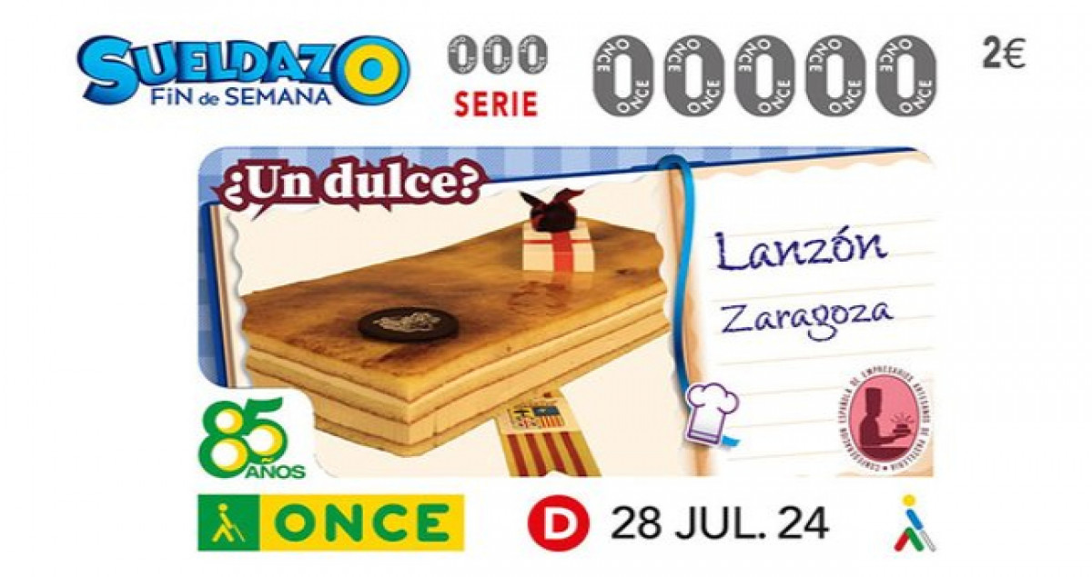 El Sueldazo de Fin de Semana de la ONCE ofrece, todos los sábados y domingos, un premio principal a las cinco cifras y serie de 300.000 euros, más 5.000 euros al mes durante 20 años consecutivos a un solo cupón. Y también ofrece premios de 2.000 euros al mes durante 10 años consecutivos, a otros cuatro cupones. Los cupones de la ONCE se comercializan por los 19.000 agentes vendedores de la Organización, 2.400 de los cuales trabajan en Catalunya. Además, pueden adquirirse desde la página web de la organización y también en una amplia red de establecimientos colaboradores autorizados.