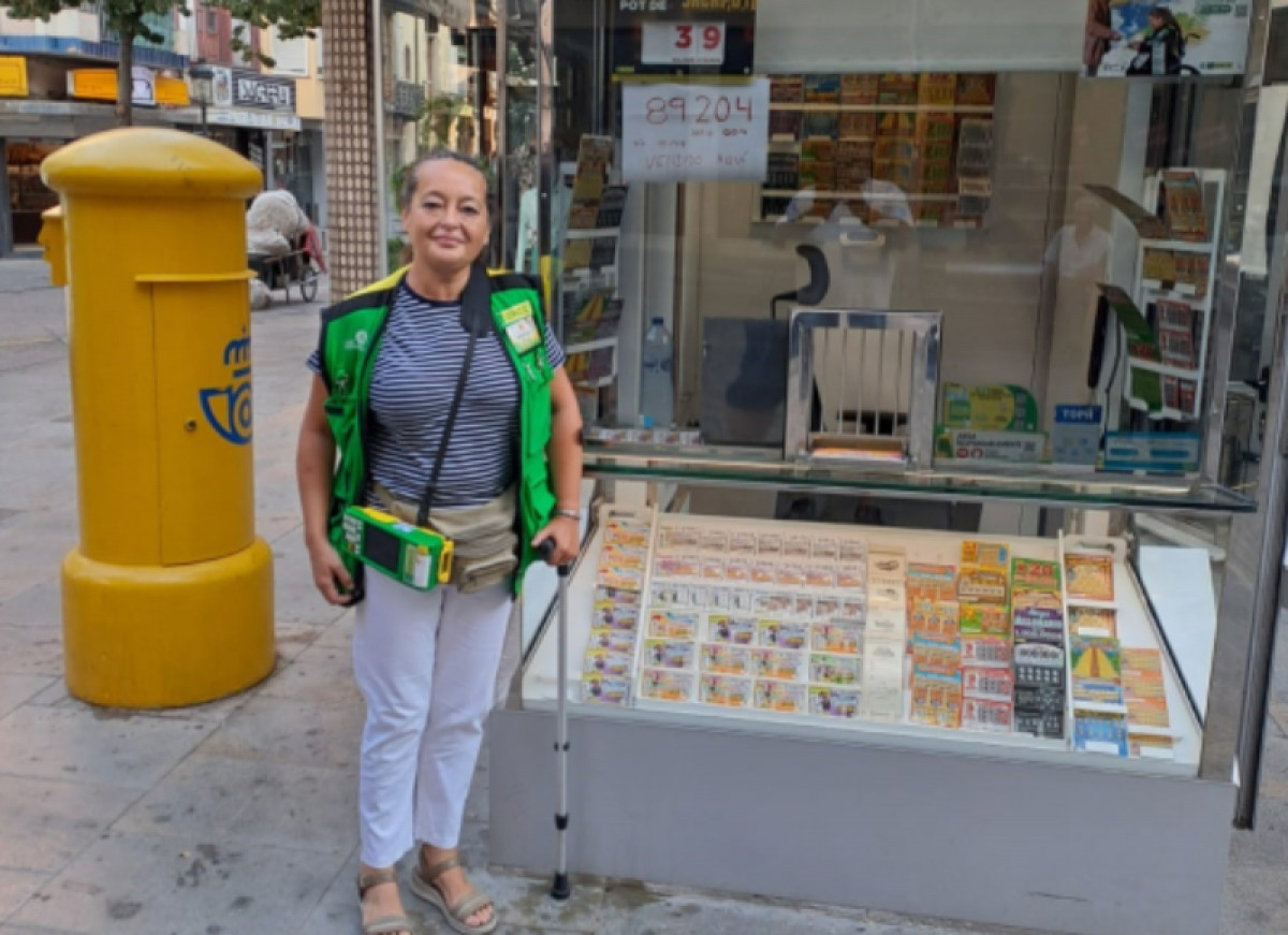 Estrella Suárez, agente vendedora de los juegos responsables de la Organización, es quien ha traído la suerte a Blanes con la venta de un cupón premiado con 5.000 euros al mes durante 20 años y 300.000 euros al contado y cuatro cupones premiados con 20.000 euros cada uno: 1.580.000 euros en total.