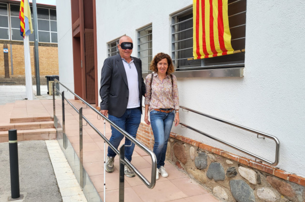 El alcalde de Canovelles vive en primera persona un paseo a ciegas por la calle