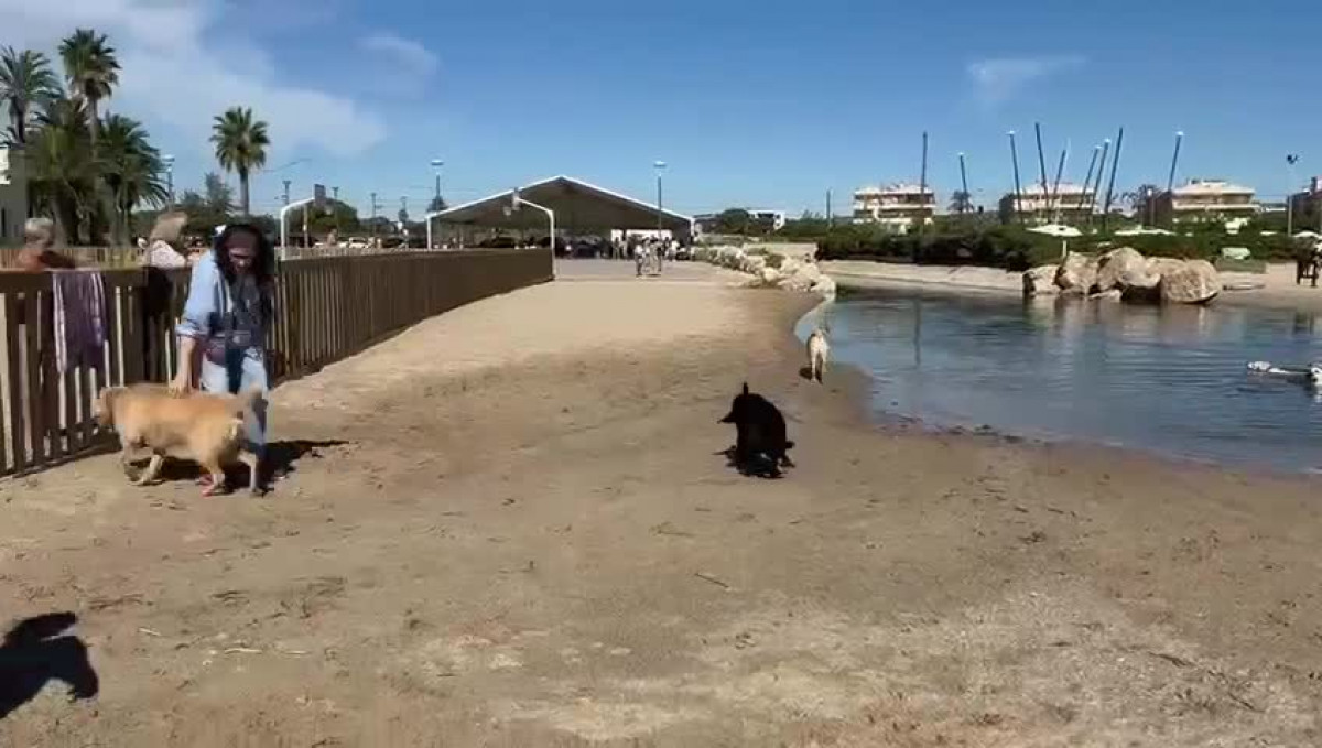 VÍDEO: 20 perros lazarillo se bañan y juegan en la playa de Torredembarra