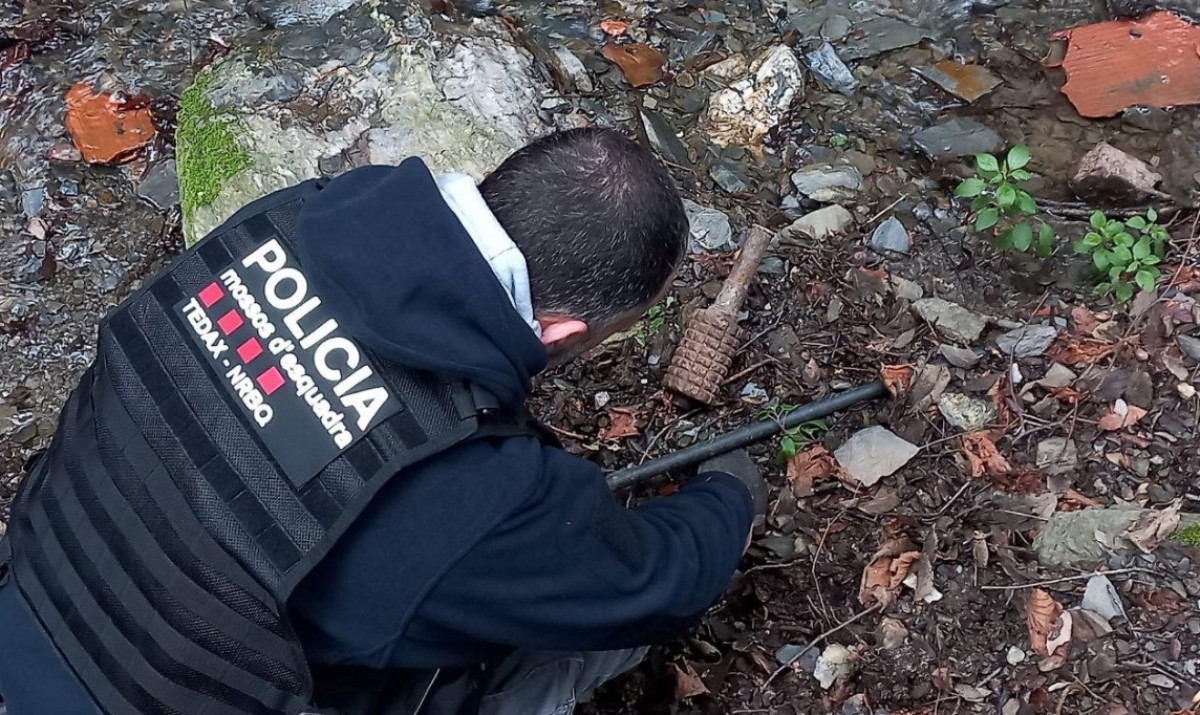 Los Mossos d'Esquadra han asegurado un total de 15 granadas de mano y 7 proyectiles de mortero, localizados durante la tarde del pasado miércoles 19 de marzo en una riera del municipio de Piera (Anoia). El hallazgo se produjo tras recibir un aviso ciudadano alertando de la presencia de varios artefactos que parecían explosivos.
