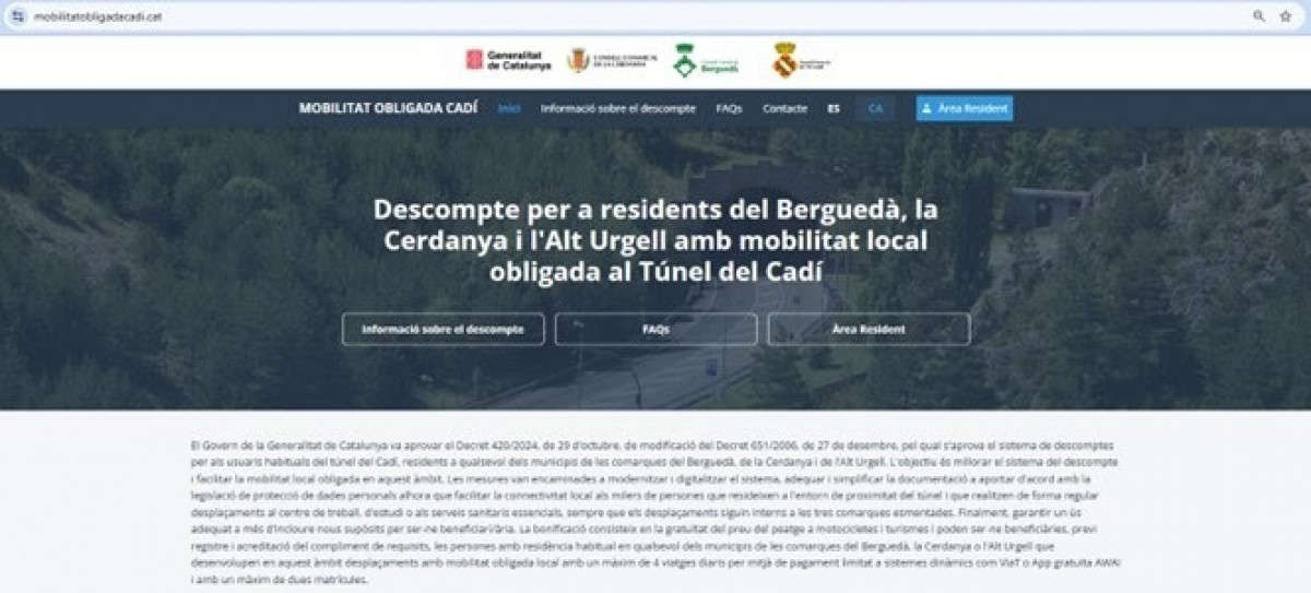La Generalitat ha puesto en funcionamiento una nueva web para que vecinos de las comarcas del Alt Urgell, el Berguedà y la Cerdanya pueden inscribirse y beneficiarse de la gratuidad del Túnel del Cadí (Lleida).