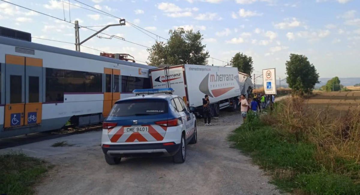 Descarrila un tren por la colisión de un camión en un paso a nivel entre Balenyà y Els Hostalets y Centelles