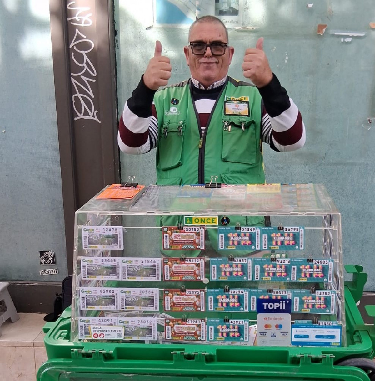 Domingo Gálvez, agente vendedor con discapacidad, llevó la suerte a la localidad de l'Alt Empordà al vender cinco cupones premiados con 20.000 euros cada uno en su punto de venta