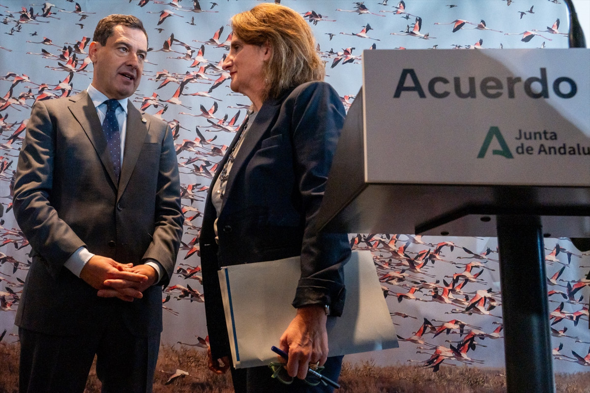 Este lunes se ha demostrado que cuando los políticos quieren se puede. El Gobierno de España y la Junta de Andalucía han firmado un acuerdo que permitirá reducir la presión sobre los acuíferos. Juanma Moreno, presidente de la Junta de Andalucía y la ministra para la Transición Ecológica, Teresa Ribera, tras dos años de negociación, por fin pusieron su firma en los papeles que certifican lo acordado. Lo han hecho con el consentimiento de todas las partes: regantes, ayuntamientos y agricultores. Para llevar a cabo las medidas necesarias se cuenta con 1.400 millones, financiados al cincuenta por ciento por cada administración.