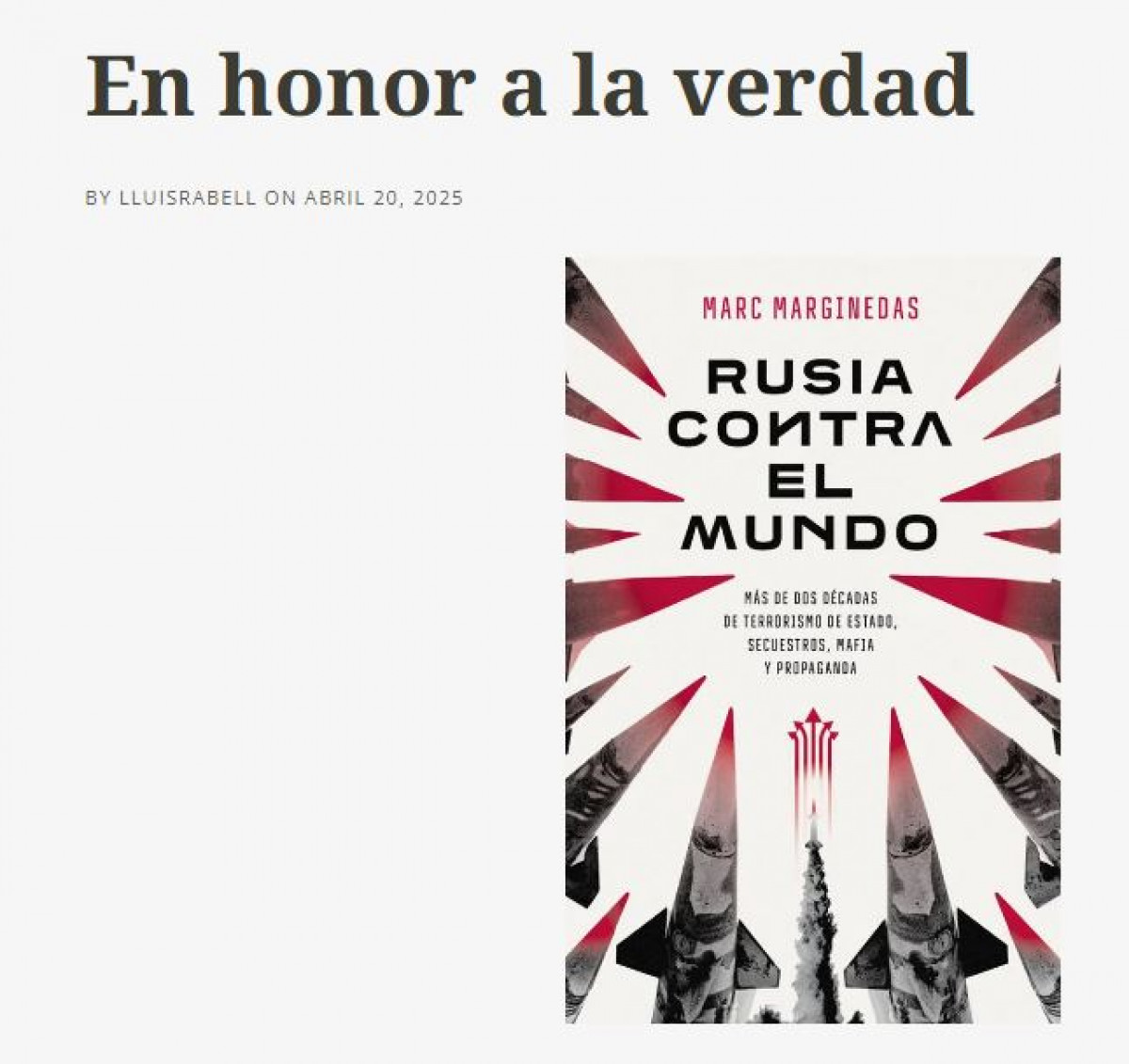 Un libro de reciente publicación – y varias veces reeditado ya –, “Rusia contra el mundo” (Ed. Península), lo pone de manifiesto a través de un riguroso trabajo de investigación periodística. Su autor, Marc Marginedas, corresponsal de “El Periódico” en distintos países, desde el Magreb a Oriente Medio pasando por Rusia, devino familiar de la opinión pública a raíz del dramático secuestro del que fue objeto durante seis interminables meses, entre 2013 y 2014, en Siria, a manos del ISIS, en plena guerra civil. El libro de Marginedas quiere rendir un sentido homenaje a sus compañeros de profesión, de las más diversas nacionalidades, asesinados por los terroristas. De hecho, el mejor homenaje que pueda tributarse a esos periodistas: la búsqueda de la verdad.