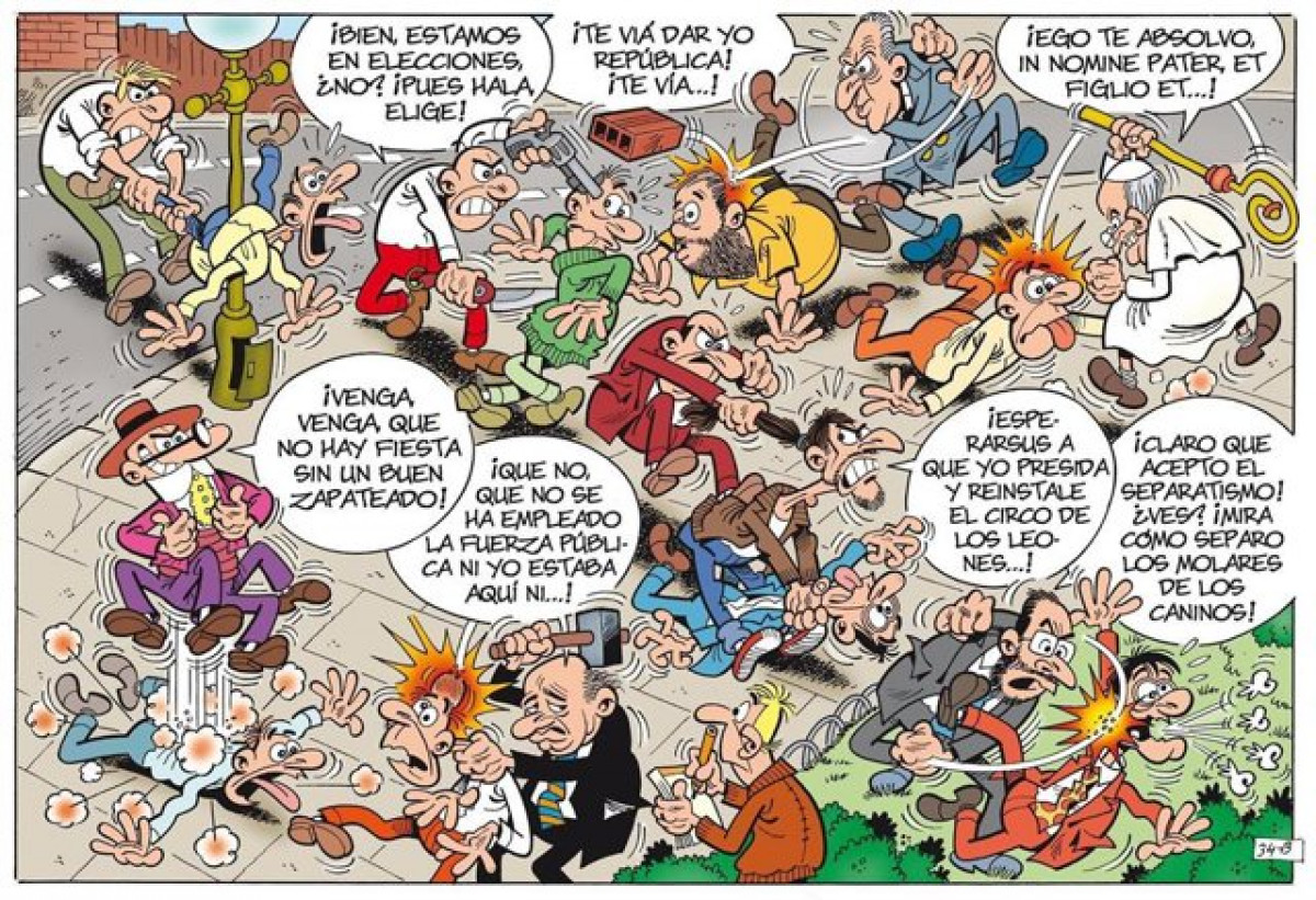 Como casi todo el mundo, de niño fui un lector entusiasta de tebeos. En especial, lo fui de Roberto Alcázar y Pedrín, de El Capitán Trueno (más que de El Jabato); también de Azucena, lo recibía mi hermana y yo lo leía encandilado. Ocasionalmente, de Hazañas bélicas (con el sargento Gorila). Pero mis preferidos eran el TBO (con 'La familia Ulises', 'Josechu el vasco', 'el doctor Franz de Copenhage') y el Tio Vivo (con Escobar, autor de 'Zipi y Zape', 'Carpanta', 'Petra criada para todo'; y Peñarroya, autor de 'Don Pío', el 'Gordito Relleno', 'Pitagorín'). Ya no recuerdo bien si salían en el Pulgarcito, otro tebeo mítico (Vázquez hacía 'Las hermanas Gilda, 'La familia Cebolleta'; Conti era el autor de 'El loco Carioco'; y Roberto Segura lo era de 'Rigoberto Picaporte, un solterón de mucho porte'). Todo se mezclaba sin suficiente distinción en aquel mundo de ilusión. Hoy siguen perdurando en mi retina los personajes de Ibáñez: 'Rompetechos'; 'El botones Sacarino'; 'Pepe Gotera y Otilio'; la desternillante '13, Rue del Percebe'; 'Mortadelo y Filemón'.